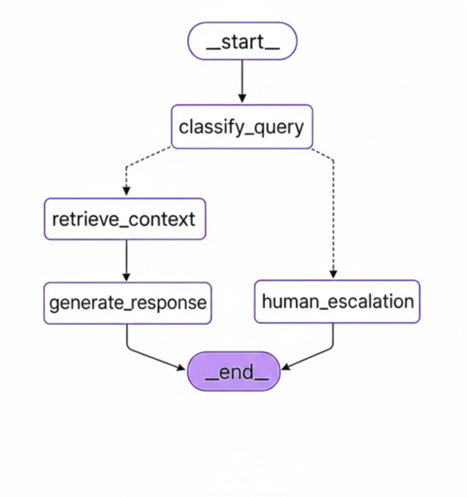 2. Routing logic – Does it route simple queries to RAG and complex ones to humans?
