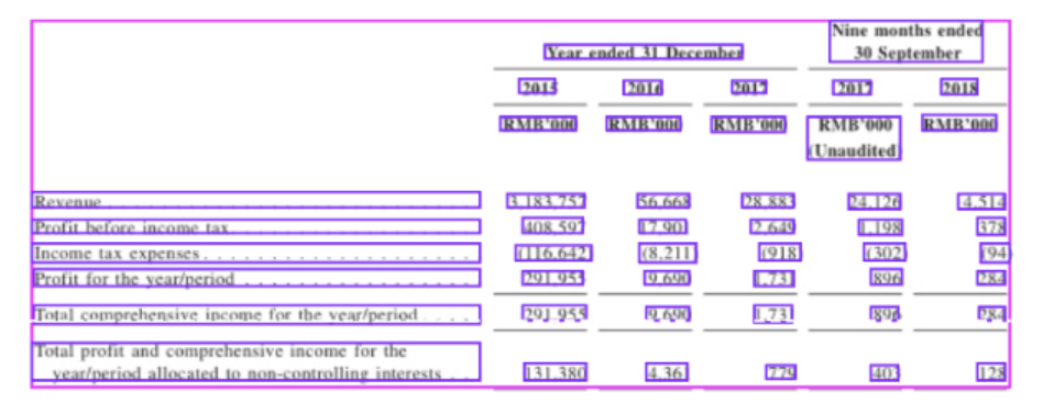 This is where you’d see bounding boxes appear around distinct regions if you were visualizing the process. Each region gets classified: this is a data table, this is a paragraph of terms and conditions, this is a signature block. The model doesn’t just draw rectangles; it understands hierarchical relationships. It knows that this small table is a footnote reference to that larger table above it.