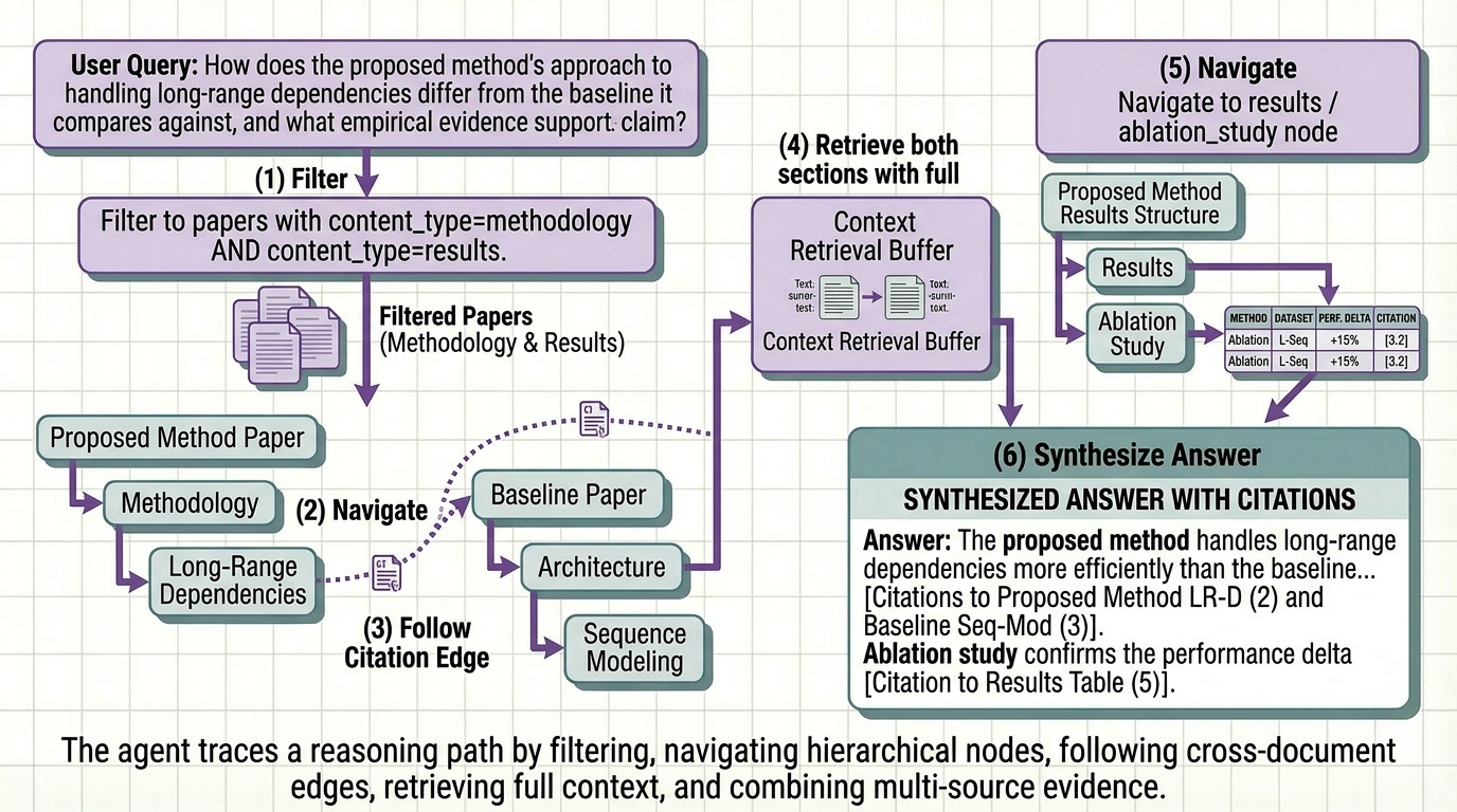 Multi-hop traversal: follow cross-paper links for multi-step reasoning.x